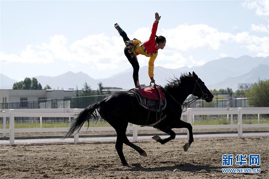8月20日,骑手表演马术。 当日,拉萨雪顿节民族传统马术表演在拉萨市北郊赛马场进行。 新华社记者 詹彦 摄