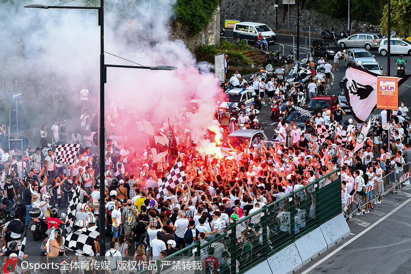 斯佩齐亚球迷庆祝球队升入意甲联赛
