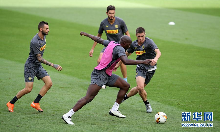 8月20日,国际米兰队球员卢卡库(前排中)与队友一同参加训练。 当日,意甲国际米兰队在德国科隆进行训练,备战当地时间8月21日对阵西甲塞维利亚队的欧罗巴联赛决赛。 新华社发(欧足联供图)