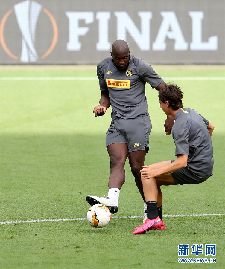 8月20日,国际米兰队球员卢卡库(左)参加训练。 当日,意甲国际米兰队在德国科隆进行训练,备战当地时间8月21日对阵西甲塞维利亚队的欧罗巴联赛决赛。 新华社发(欧足联供图)