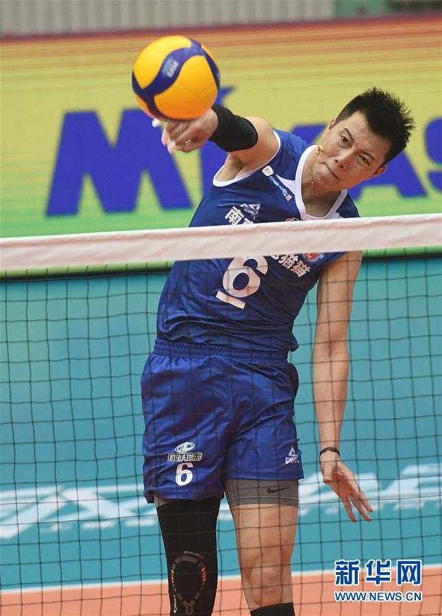 8月24日,江苏南京广电猫猫队球员张晨在比赛中进攻。 当日,在河北省秦皇岛进行的2019-2020赛季中国男子排球超级联赛第二阶段E组比赛中,江苏南京广电猫猫队以1比3不敌上海金色年华队。 新华社记者 朱旭东 摄