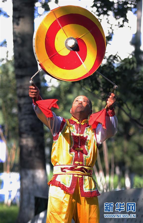 8月11日,董树林在北京五棵松空竹文化广场抖空竹。新华社记者 王东震 摄
