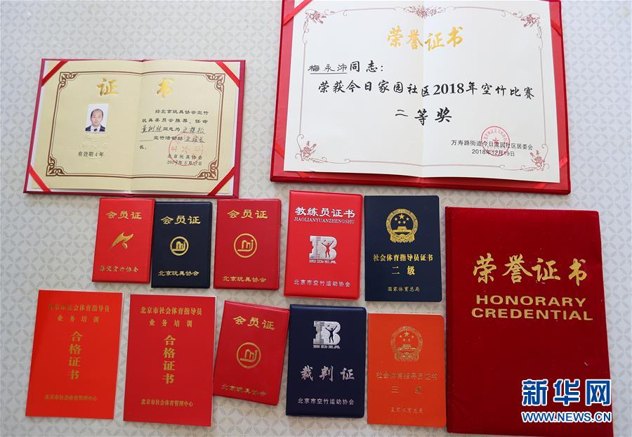 这是8月11日拍摄的董树林和梅永沛的获奖证书和教练员证书等。新华社记者 王东震 摄