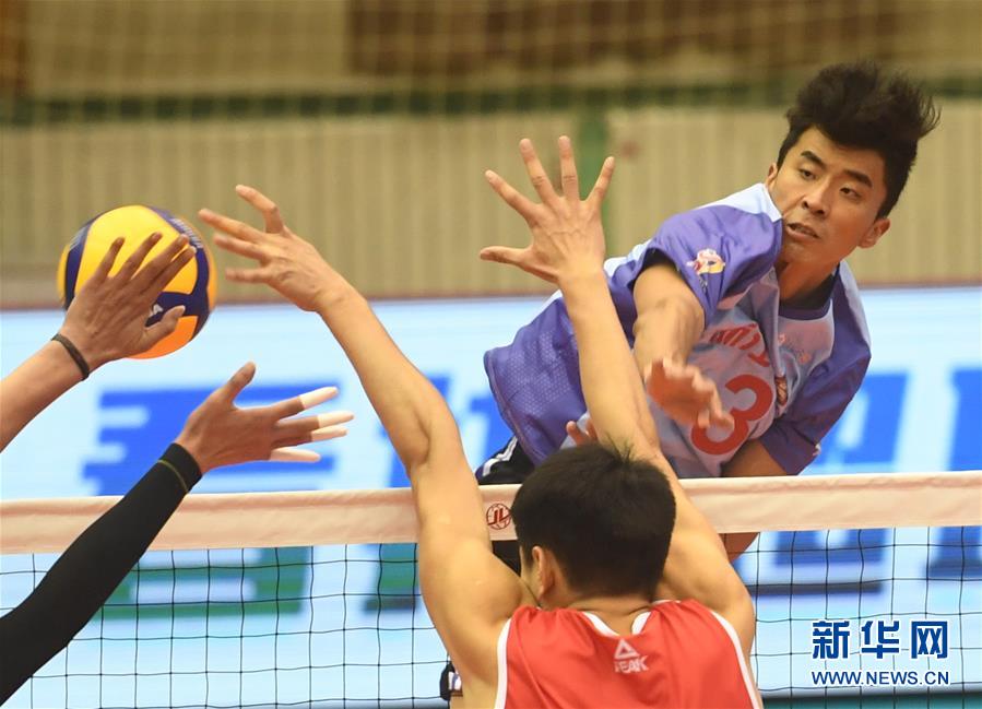 8月29日,浙江体彩队球员张景胤在比赛中进攻。 当日,在河北秦皇岛进行的2019-2020赛季中国男子排球超级联赛第三阶段半决赛中,浙江体彩队以1比3不敌江苏南京广电猫猫队。 新华社记者 朱旭东 摄