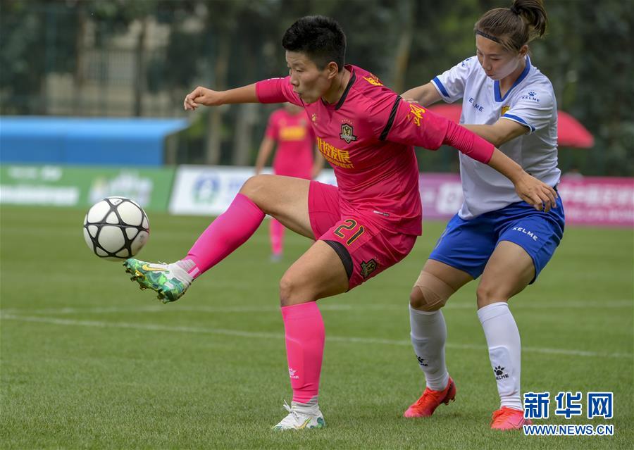 8月29日,北京北控发展队球员马晓旭(左)在比赛中控球。 当日,在云南昆明举行的2020赛季中国足球协会女子足球超级联赛第三轮比赛中,长春大众置业队以2比1战胜北京北控发展队。 新华社记者江文耀摄