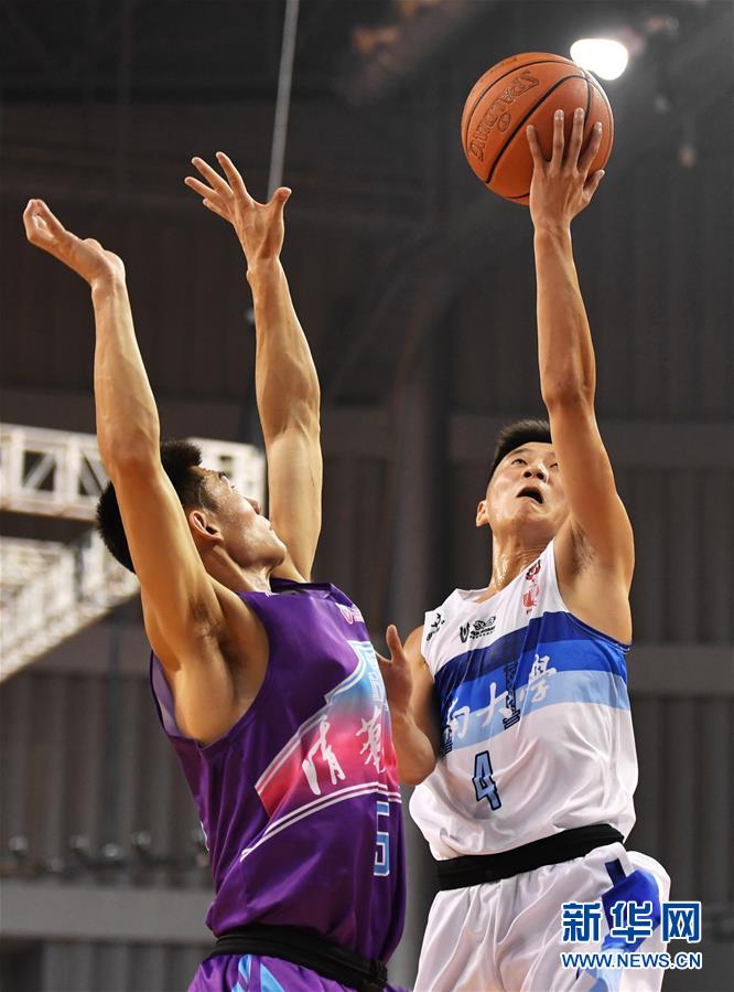 8月29日,清华大学队球员邹阳(左)防守中南大学队球员甄子晨的上篮。 当日,第22届中国大学生篮球联赛(CUBA)一级联赛(男子组)全国总决赛在福建省泉州市举行。清华大学队最终以83比75击败中南大学队,夺得总决赛冠军。 新华社记者魏培全摄