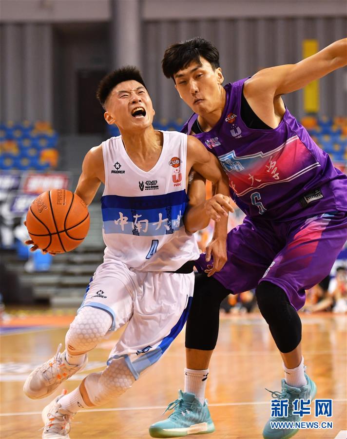 8月29日,中南大学队球员甄子晨(左)在篮下突破清华大学队球员杨晨的防守。 当日,第22届中国大学生篮球联赛(CUBA)一级联赛(男子组)全国总决赛在福建省泉州市举行。清华大学队最终以83比75击败中南大学队,夺得总决赛冠军。 新华社记者魏培全摄