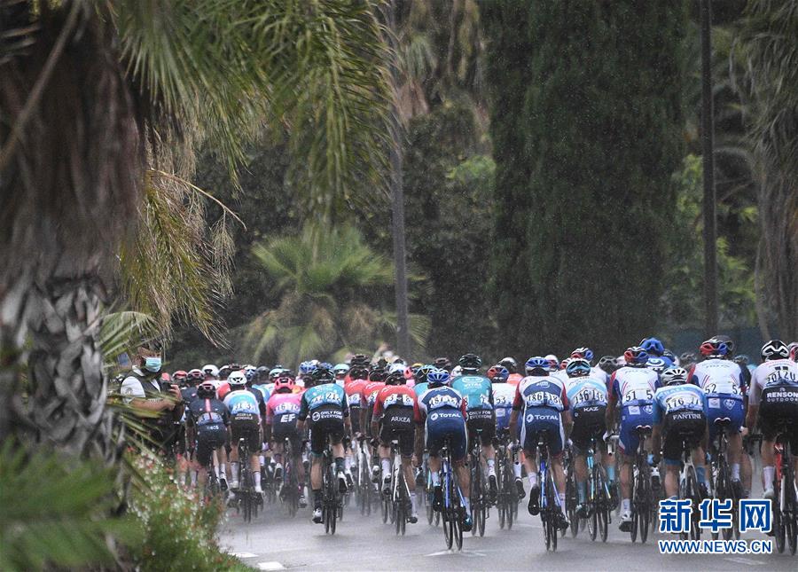 8月29日,车手们在比赛中。 当日,2020年环法自行车赛在法国尼斯开赛。首个赛段全长156公里,在法国南部著名旅游城市尼斯进行。阿联酋航空车队的挪威车手亚历山大·克里斯托弗以3小时46分13秒成为首个赛段的冠军。 新华社/法新