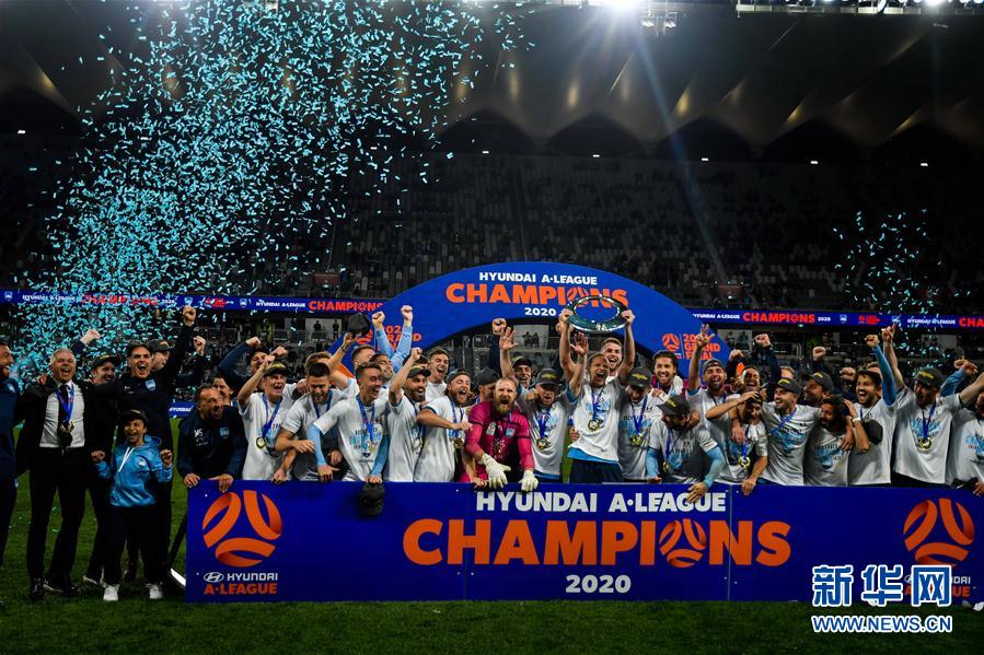 8月30日,悉尼FC队球员和教练组成员在颁奖仪式上庆祝夺冠。 当日,澳大利亚超级联赛总决赛在西悉尼体育场打响。经过120分钟激战,卫冕冠军悉尼FC队以1比0击败墨尔本城队,成功创造历史,成为澳超首个“五冠王”。 新华社发(基思·麦金尼斯摄)