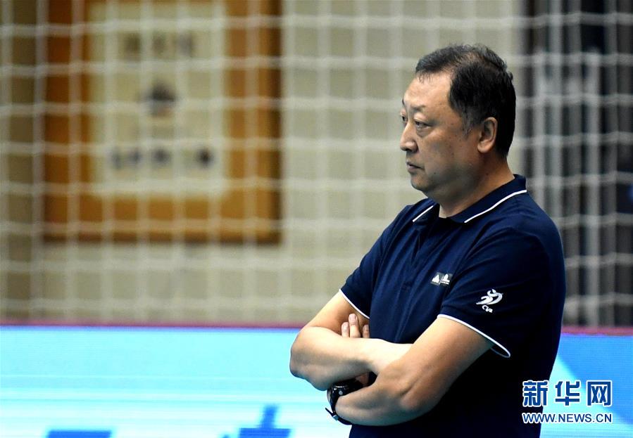 8月31日,北京汽车队主教练刘旭东在场边观战。 当日,在河北秦皇岛进行的2019-2020赛季中国男子排球超级联赛第四阶段五、六名决赛中,北京汽车队以3比0战胜四川劲浪体育队,获得第五名。 新华社记者王晓摄