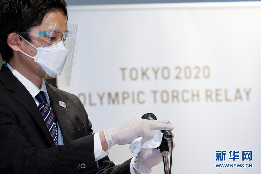 8月31日,工作人员对展出仪式上使用的话筒进行消毒。 当日,东京奥运会圣火在日本奥林匹克博物馆公开亮相,从9月1日起,圣火将在这里进行为期两个月的展览。 新华社/POOL/罗德里戈·雷耶斯·马林