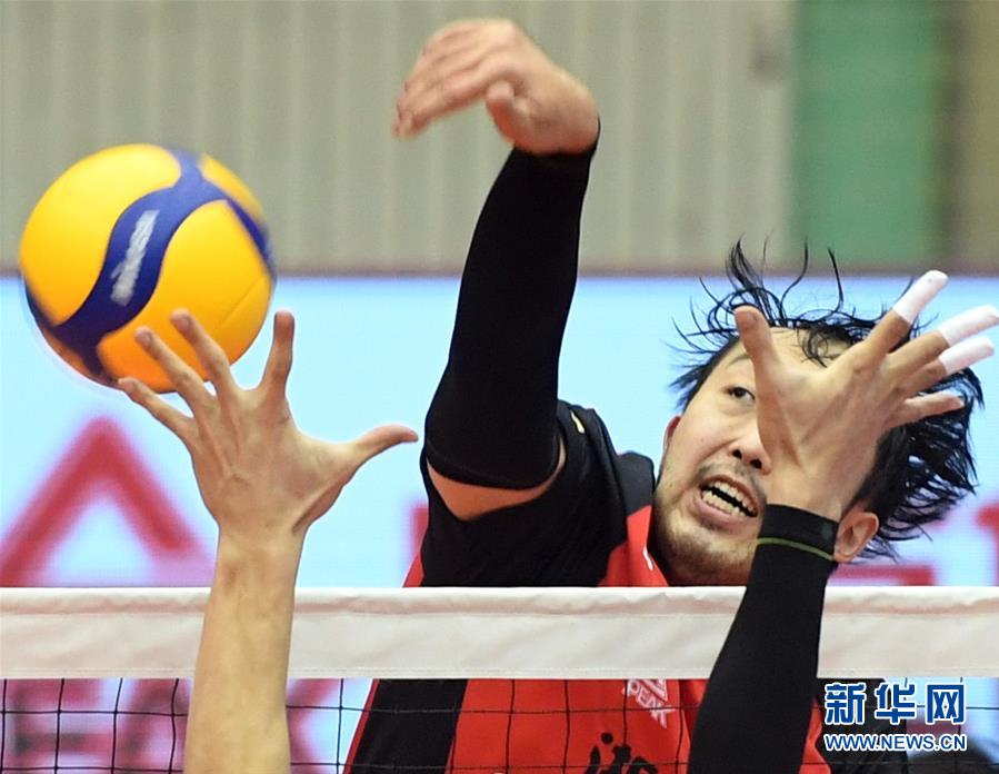 8月31日,浙江体彩队球员任郡勃在比赛中扣球。 当日,在河北秦皇岛进行的2019-2020赛季中国男子排球超级联赛第四阶段三、四名决赛中,浙江体彩队以1比3不敌山东体彩队,获得第四名。 新华社记者朱旭东摄