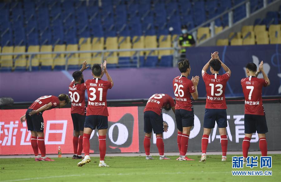 9月1日,重庆当代队球员在赛后向球迷致意。 当日,在2020赛季中国足球协会超级联赛第一阶段(苏州赛区)第八轮比赛中,北京中赫国安队以5比2战胜重庆当代队。 新华社记者季春鹏摄