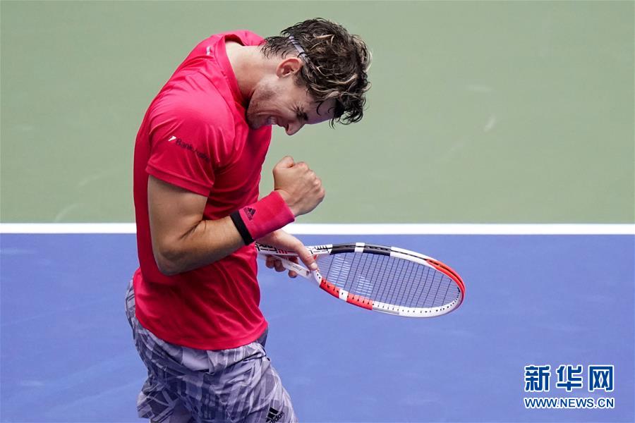 9月7日,蒂姆在比赛结束后庆祝胜利。 当日,在2020美国网球公开赛男单第四轮比赛中,奥地利选手蒂姆以3比0战胜加拿大选手阿利亚西姆,晋级八强。 新华社/美联