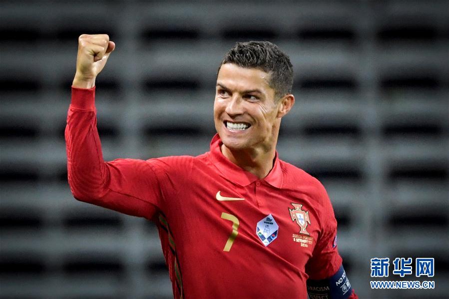 9月8日,葡萄牙队球员克·罗纳尔多在比赛中庆祝进球。 当日,在瑞典斯德哥尔摩进行的2020欧洲国家足球联赛A级第三组第二轮比赛中,葡萄牙队客场以2比0战胜瑞典队。 新华社/路透