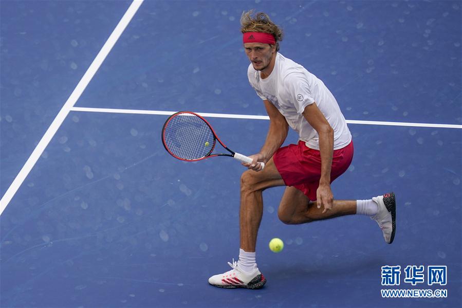 9月8日,兹维列夫在比赛中回球。 当日,在2020美国网球公开赛男单四分之一决赛中,德国选手兹维列夫以3比1战胜克罗地亚选手乔里奇,晋级四强。 新华社/美联
