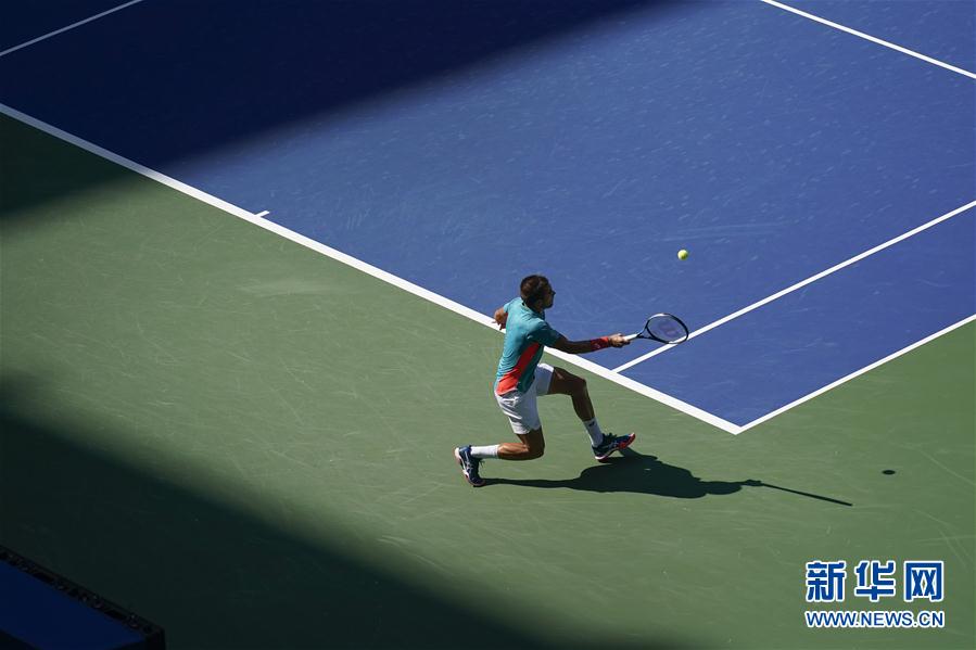 9月8日,乔里奇在比赛中回球。 当日,在2020美国网球公开赛男单四分之一决赛中,德国选手兹维列夫以3比1战胜克罗地亚选手乔里奇,晋级四强。 新华社/美联