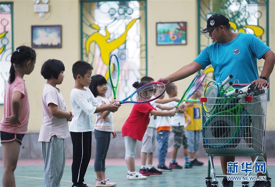9月9日,在江西省崇义县思源实验学校,老师给小学一年级新生发放网球拍。 当日,江西省崇义县思源实验学校的小学生们迎来了新学期的趣味网球课。据了解,该校长期开设短式网球的特色课,从普及网球规则、文化及礼仪等开始启蒙,从教学、训练、比赛三方面开展课程。 新华社记者 万象 摄
