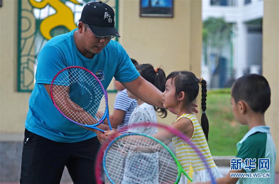 9月9日,在江西省崇义县思源实验学校,老师指导小学一年级新生握拍动作。 当日,江西省崇义县思源实验学校的小学生们迎来了新学期的趣味网球课。据了解,该校长期开设短式网球的特色课,从普及网球规则、文化及礼仪等开始启蒙,从教学、训练、比赛三方面开展课程。 新华社记者 万象 摄