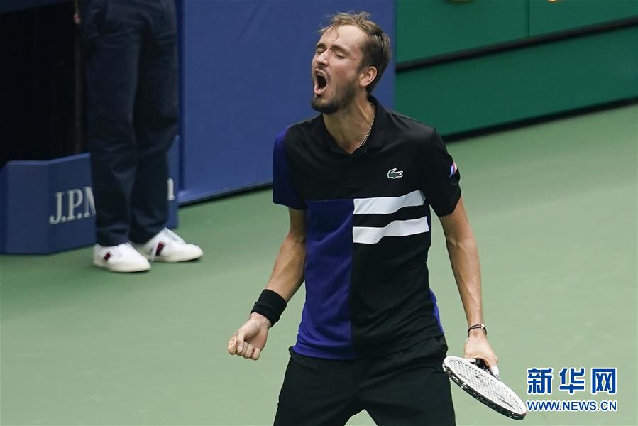 9月9日,梅德韦杰夫在赢得比赛后怒吼。 当日,在2020美国网球公开赛男单四分之一决赛中,俄罗斯选手梅德韦杰夫以3比0战胜同胞鲁布廖夫,晋级半决赛。 新华社/美联