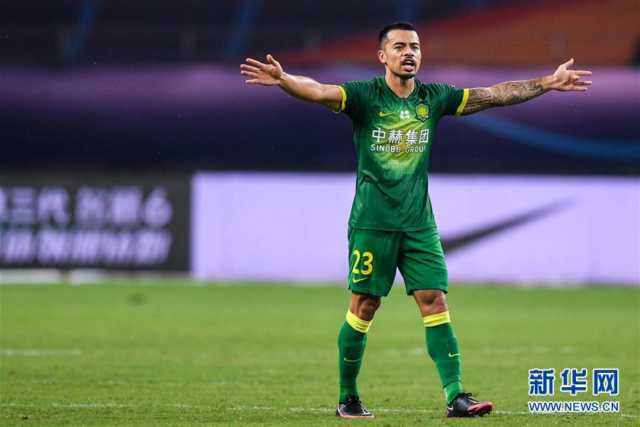 9月10日,北京中赫国安队球李可在比赛中指挥队友跑位。 当日,在2020赛季中国足球协会超级联赛第一阶段(苏州赛区)第十轮比赛中,北京中赫国安队以2比0战胜天津泰达队。 新华社记者李博摄