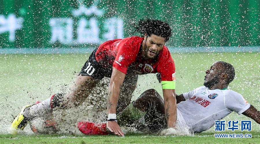 9月10日,上海上港队球员胡尔克(左)与青岛黄海青港队球员米纳拉在比赛中拼抢。 当日,在2020赛季中国足球协会超级联赛第一阶段(苏州赛区)第十轮比赛中,上海上港队以2比1战胜青岛黄海青港队。 新华社记者杨磊摄