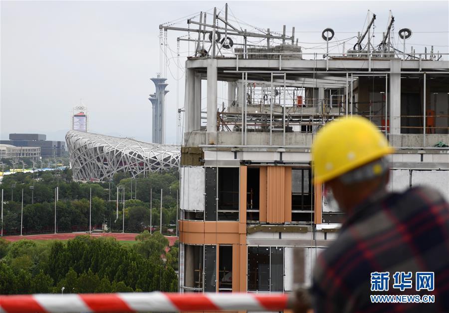 这是9月12日拍摄的正在建设中的北京冬奥村。 当日,北京冬奥村样板间对外亮相,此次亮相的是220平米的户型,每套提供三间单人间和一个双人间,所有房间均设立了完备的无障碍设施,满足残疾人运动员的居住需要。 承载着“健康建筑”理念的北京冬奥村计划于今年年底实现完工,将在2022北京冬奥会期间作为运动员及随行官员居住生活的地方。 新华社记者 张晨霖 摄