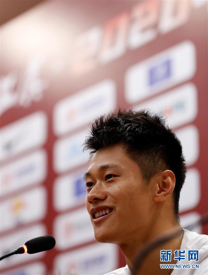 9月13日,短跑运动员谢震业在新闻发布会上。 当日,2020年全国田径锦标赛新闻发布会在浙江省绍兴市上虞区举行。本次比赛将于9月15日至18日在上虞体育中心进行。 新华社记者 王丽莉 摄