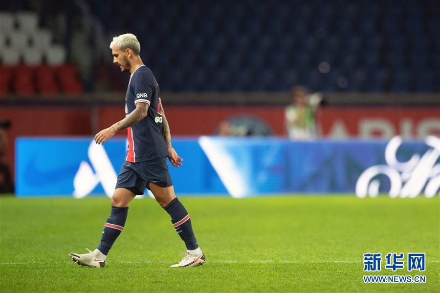 9月13日,巴黎圣日耳曼队球员帕雷德斯累计两张黄牌后离场。 当日,在2020-2021赛季法国足球甲级联赛第三轮比赛中,巴黎圣日耳曼队主场以0比1不敌马赛队。 新华社发(杰克·陈摄)
