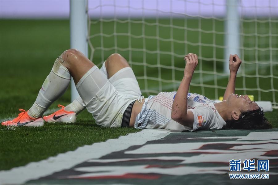 9月14日,上海绿地申花队球员杨旭射门后倒地。 当日,在2020赛季中国足球协会超级联赛第一阶段(大连赛区)第11轮比赛中,大连人队以1比1战平上海绿地申花队。 新华社记者 潘昱龙 摄