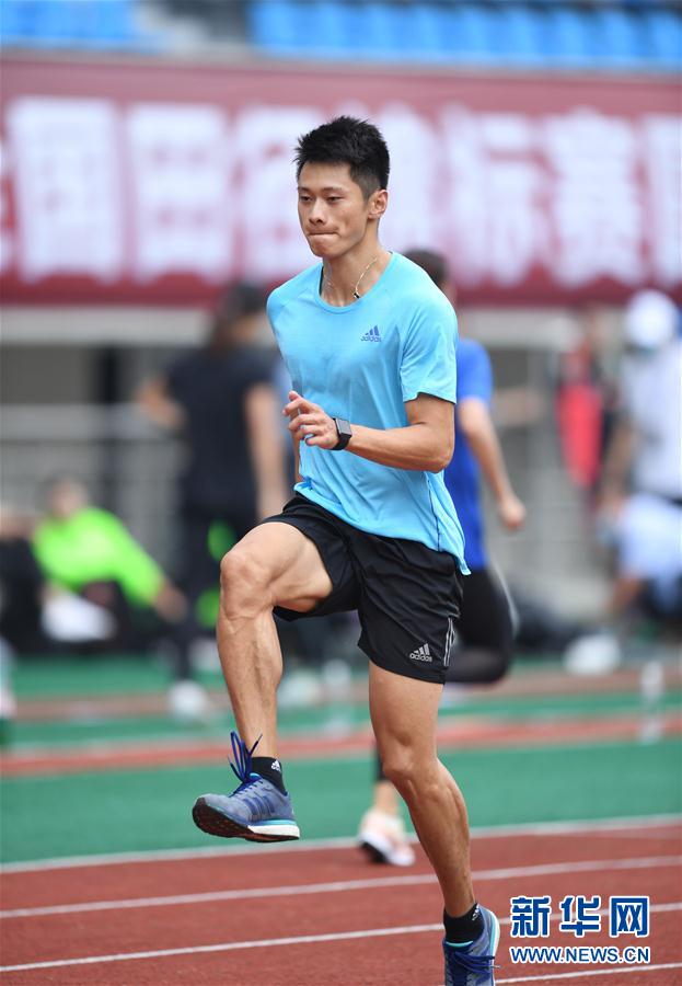 9月14日,男子短跑运动员、浙江队选手谢震业进行场地适应训练。 当日,参赛运动员在浙江省绍兴市上虞体育场进行场地适应训练,备战将于9月15日至18日在这里举行的2020年全国田径锦标赛。 新华社记者贾宇辰摄