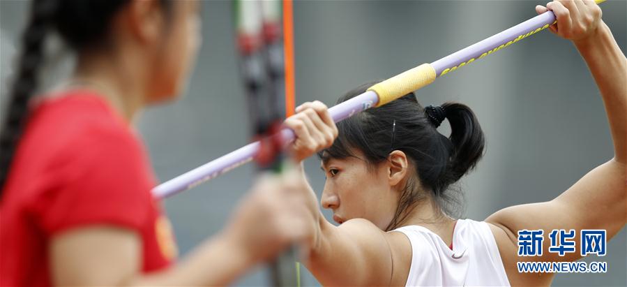 9月14日,女子标枪运动员、湖北队选手吕会会进行场地适应训练。 当日,参赛运动员在浙江省绍兴市上虞体育场进行场地适应训练,备战将于9月15日至18日在这里举行的2020年全国田径锦标赛。 新华社记者王丽莉摄