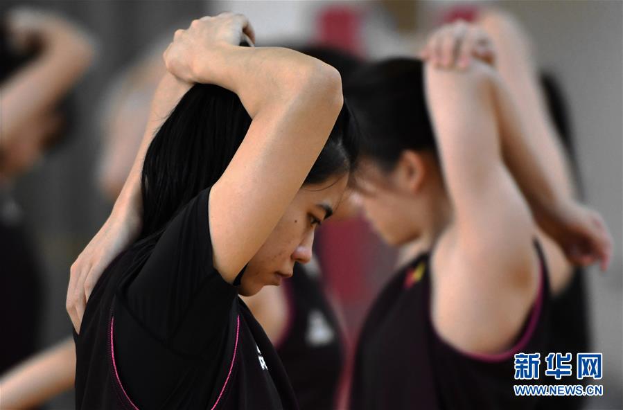 9月15日,福建恒安心相印女篮球员刘灵菲(左)进行肌肉拉伸训练。 近日,在做好疫情防控的前提下,福建恒安心相印女篮在福州开展训练,备战新赛季WCBA联赛。2020-2021赛季中国女子篮球联赛(WCBA)正式比赛阶段揭幕战将于10月1日在四川成都打响。 新华社记者 魏培全 摄