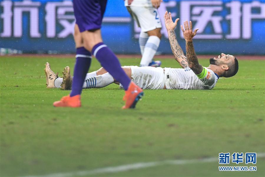 9月16日,石家庄永昌队球员马修斯在比赛中。 当日,在2020赛季中国足球协会超级联赛第一阶段(苏州赛区)第11轮比赛中,天津泰达队以1比1战平石家庄永昌队。 新华社记者 李博 摄