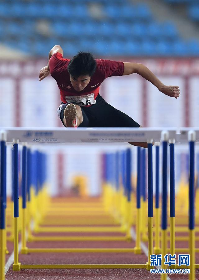 9月16日,上海队选手谢文骏在男子110米栏决赛中。最终他以13秒24的成绩夺冠。 当日,在浙江省绍兴市举行的2020年全国田径锦标赛进入第二个比赛日。 新华社记者 贾宇辰 摄