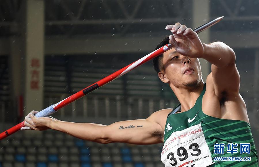 9月16日,江苏铁人队选手胡雨飞在男子十项全能标枪比赛中。最终,胡雨飞以54米97的成绩获得十项全能标枪第四名积662分,并以7313分的总成绩夺得男子十项全能亚军。 当日,在浙江省绍兴市举行的2020年全国田径锦标赛进入第二个比赛日。 新华社记者 贾宇辰 摄