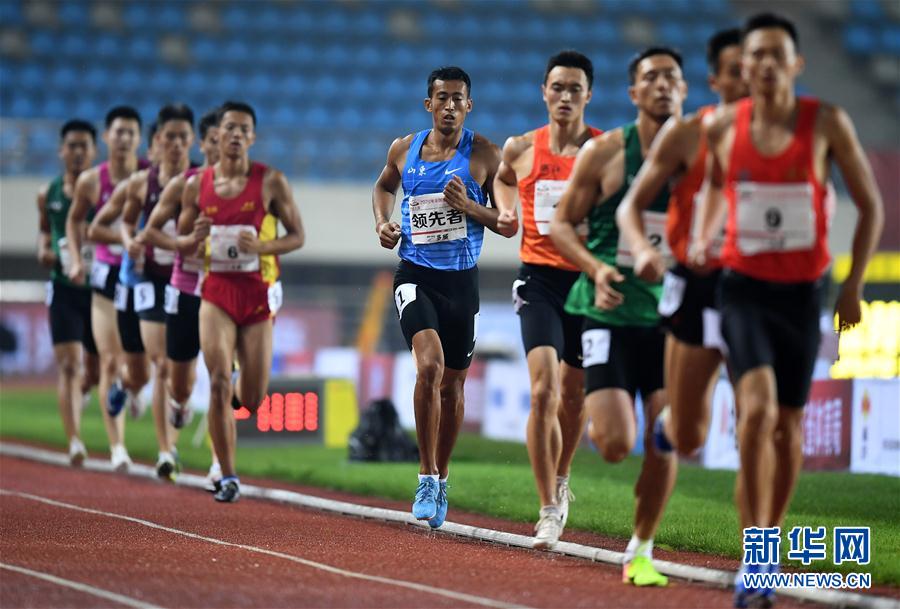 9月16日,山东队选手郭奇(右五)在男子十项全能最后一项1500米比赛后。郭奇以4分51秒51的成绩获得十项全能1500米第四名积610分,并以7405分的总成绩夺得男子十项全能冠军。 当日,在浙江省绍兴市举行的2020年全国田径锦标赛进入第二个比赛日。 新华社记者 贾宇辰 摄