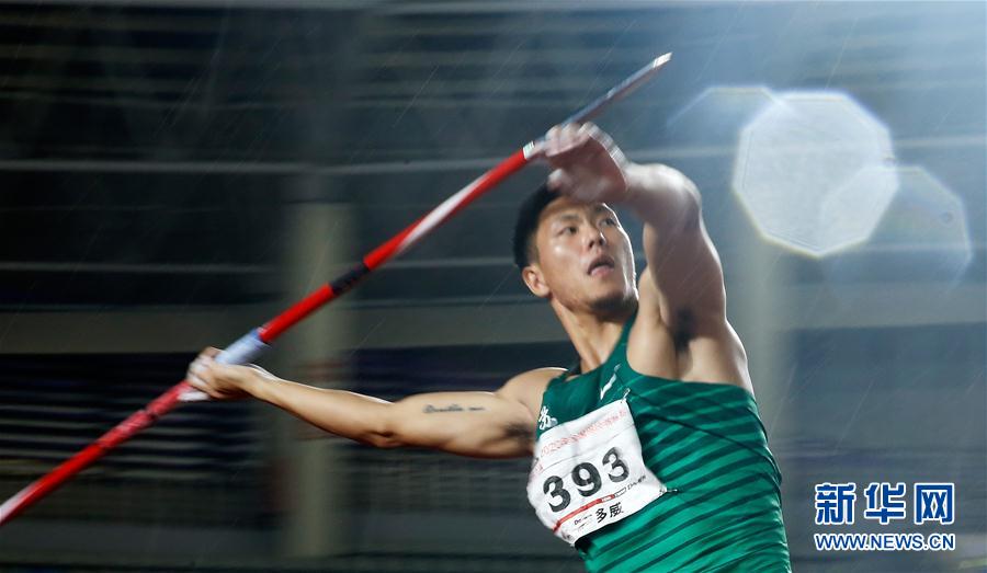 9月16日,江苏铁人队选手胡雨飞在男子十项全能标枪比赛中。最终,胡雨飞以54米97的成绩获得十项全能标枪第四名积662分,并以7313分的总成绩夺得男子十项全能亚军。 当日,在浙江省绍兴市举行的2020年全国田径锦标赛进入第二个比赛日。 新华社记者 王丽莉 摄