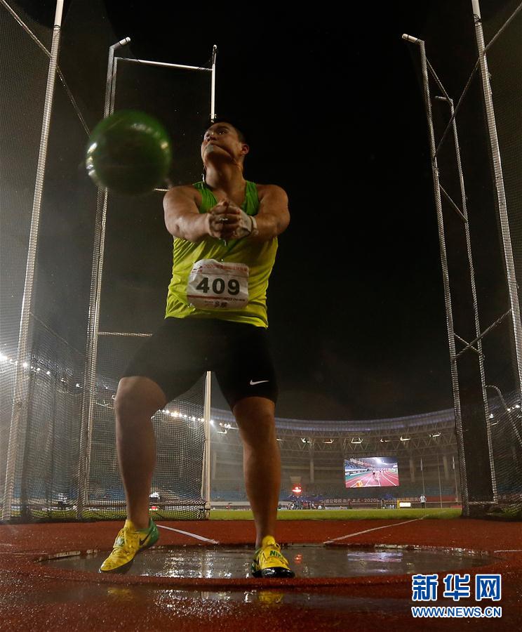 9月16日,江苏铁人队选手王琦在男子链球决赛中。最终,王琦以70米87的成绩获得亚军。 当日,在浙江省绍兴市举行的2020年全国田径锦标赛进入第二个比赛日。 新华社记者 王丽莉 摄