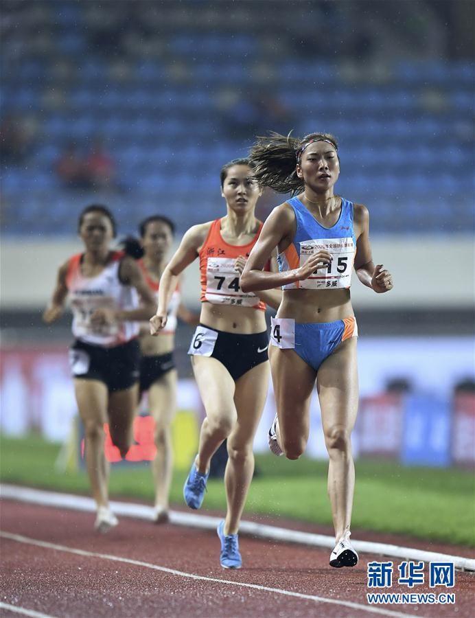 9月16日,安徽队选手王春雨(右一)在女子800米预赛中,最终她以2分06秒18的成绩晋级决赛。 当日,在浙江省绍兴市举行的2020年全国田径锦标赛进入第二个比赛日。 新华社记者 贾宇辰 摄