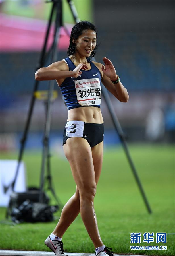 9月16日,四川队选手任世美在女子七项全能最后一项800米比赛后。任世美以2分24秒27的成绩获得七项全能800米第三名积766分,并以5746分的总成绩获得女子七项全能冠军。 当日,在浙江省绍兴市举行的2020年全国田径锦标赛进入第二个比赛日。 新华社记者 贾宇辰 摄