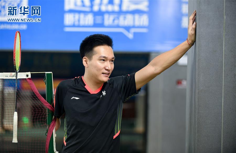 90后小伙刘帅成是吉林省残疾人羽毛球队的一名运动员。2008年初入球队,刘帅成由于右臂不完整,打球时缺少平衡,经常跌倒。很长一段时间里他都不能上场打球,只能做一些简单的训练,情绪时常很低落。2011年,经过三年的训练和调整,他在教练的鼓励下开始参加各种比赛。通过比赛,刘帅成的羽毛球技术逐步提升,同时促进了训练水平的提高,意志力和自信心大大增强。截至目前,他和队友已两次问鼎全国残疾人羽毛球锦标赛男双冠军,他自己也在吉林省残疾人运动会羽毛球男单项目中收获桂冠。现在,刘帅成正在备战明年的全国残运会。他说:“冠军,是我一直以来的梦想,也是支撑着我的动力。” 刘帅成在吉林省长春市的一家的羽毛球训练场上做拉伸动作(9月14日摄)。 新华社发(颜麟蕴 摄)