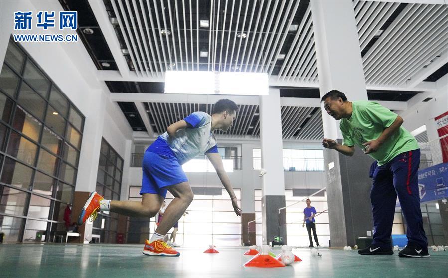 90后小伙刘帅成是吉林省残疾人羽毛球队的一名运动员。2008年初入球队,刘帅成由于右臂不完整,打球时缺少平衡,经常跌倒。很长一段时间里他都不能上场打球,只能做一些简单的训练,情绪时常很低落。2011年,经过三年的训练和调整,他在教练的鼓励下开始参加各种比赛。通过比赛,刘帅成的羽毛球技术逐步提升,同时促进了训练水平的提高,意志力和自信心大大增强。截至目前,他和队友已两次问鼎全国残疾人羽毛球锦标赛男双冠军,他自己也在吉林省残疾人运动会羽毛球男单项目中收获桂冠。现在,刘帅成正在备战明年的全国残运会。他说:“冠军,是我一直以来的梦想,也是支撑着我的动力。” 教练王立志对刘帅成(左)进行平衡训练(9月16日摄)。 新华社发(颜麟蕴 摄)
