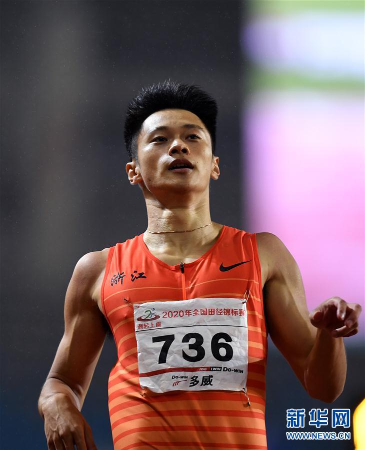 9月17日,浙江队选手谢震业在男子200米决赛后,最终他以20秒72的成绩夺冠。 当日,在浙江省绍兴市举行的2020年全国田径锦标赛进入第三个比赛日。 新华社记者贾宇辰摄