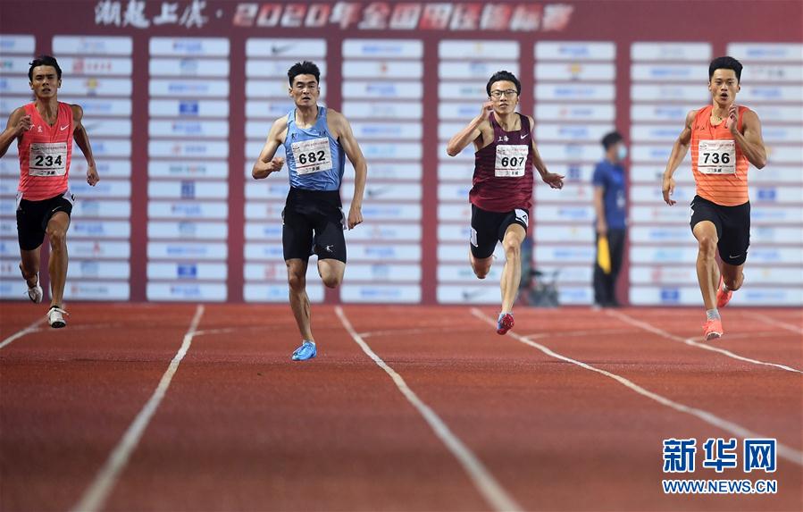 9月17日,浙江队选手谢震业(右一)和广东队选手严海滨(左一)在男子200米决赛中,最终谢震业以20秒72的成绩夺冠,严海滨以20秒86的成绩获得亚军。 当日,在浙江省绍兴市举行的2020年全国田径锦标赛进入第三个比赛日。 新华社记者贾宇辰摄