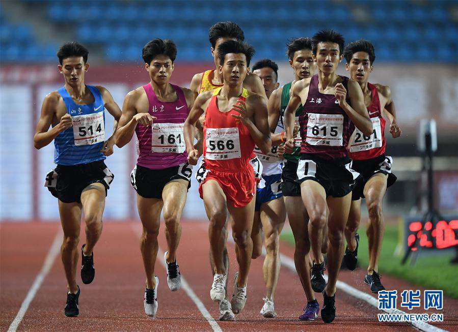 9月17日,参赛选手在男子800米决赛中。 当日,在浙江省绍兴市举行的2020年全国田径锦标赛进入第三个比赛日。 新华社记者 贾宇辰 摄