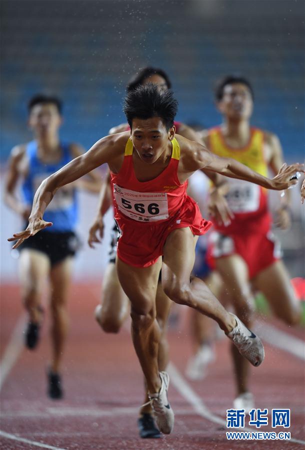 9月17日,山西队选手李俊霖(前)在男子800米决赛冲刺时摔倒,最终他以1分51秒79的成绩获得亚军。 当日,在浙江省绍兴市举行的2020年全国田径锦标赛进入第三个比赛日。 新华社记者 贾宇辰 摄
