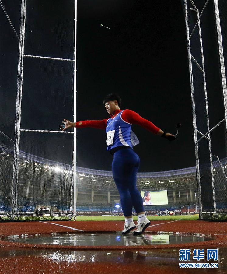 9月17日,黑龙江队选手罗娜在女子链球决赛中。最终,罗娜以69米19的成绩夺冠。 当日,在浙江省绍兴市举行的2020年全国田径锦标赛进入第三个比赛日。 新华社记者 王丽莉 摄