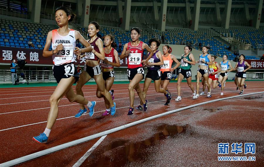 9月17日,上海队选手许双双(左二)与云南队选手张德顺(左一)在女子5000米决赛中。最终,许双双与张德顺分别以16分18秒08和16分19秒97的成绩获得冠军和季军。 当日,在浙江省绍兴市举行的2020年全国田径锦标赛进入第三个比赛日。 新华社记者王丽莉摄