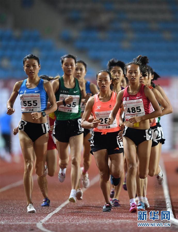 9月17日,参赛选手在女子5000米决赛中。 当日,在浙江省绍兴市举行的2020年全国田径锦标赛进入第三个比赛日。 新华社记者贾宇辰摄